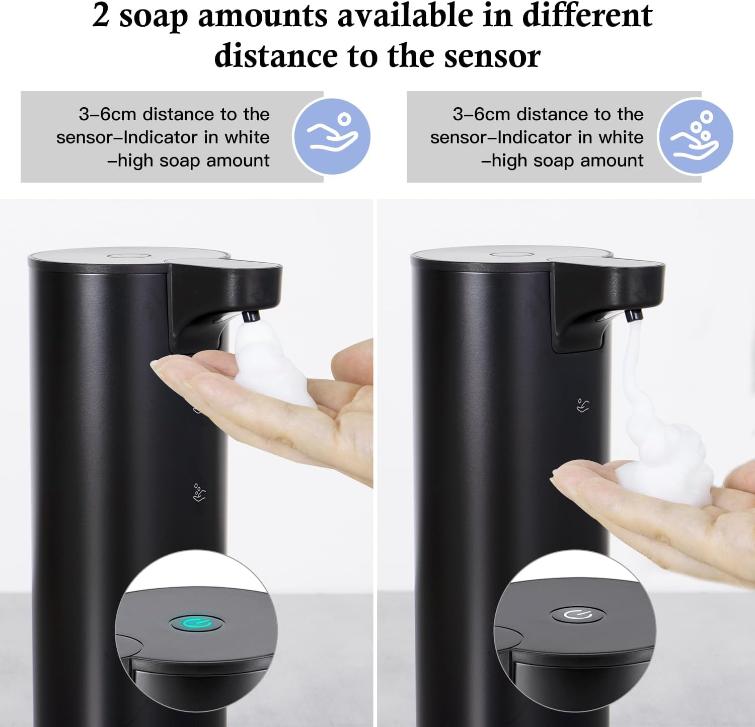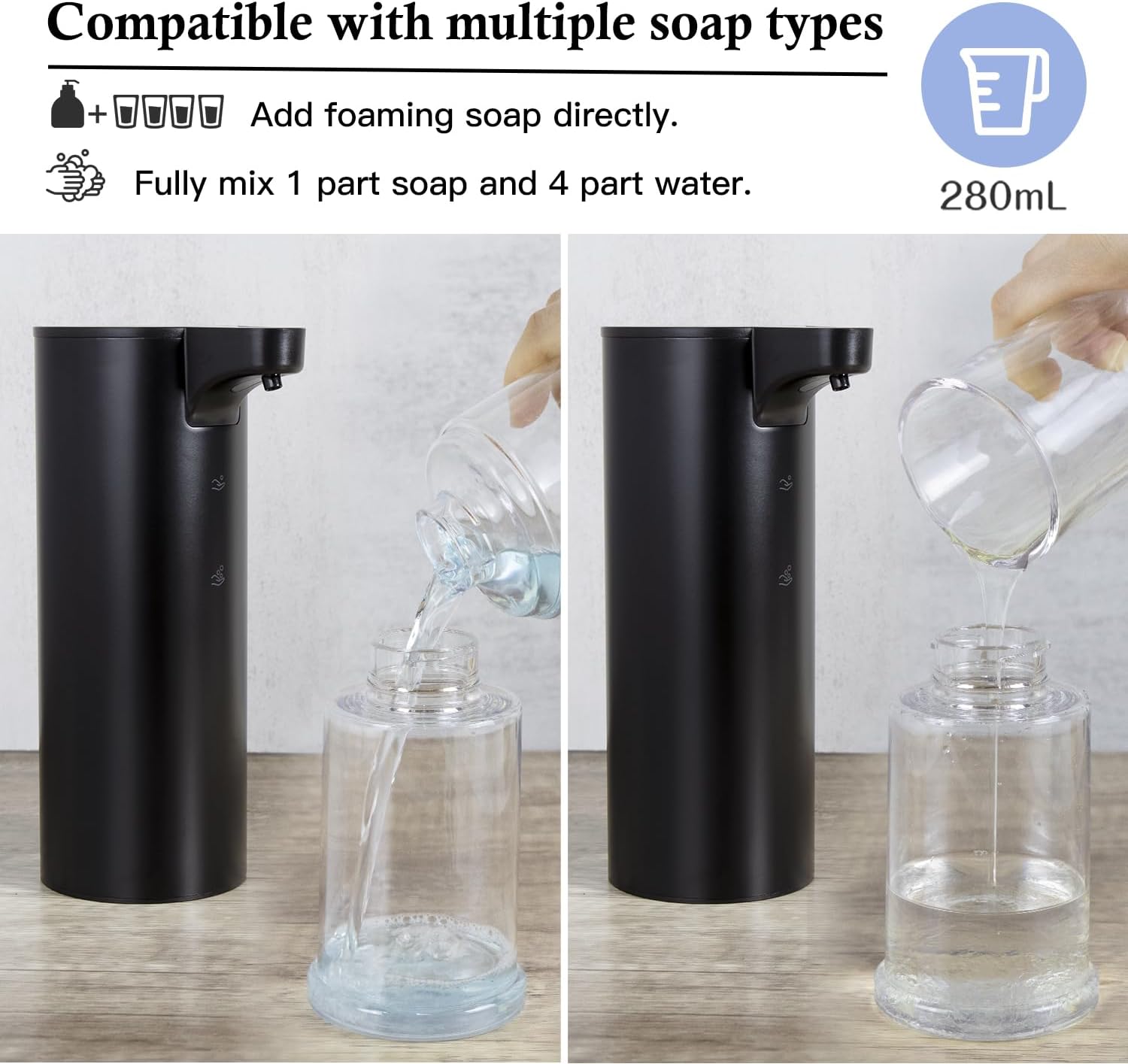 LAOPAO Automatic Soap Dispenser Foaming: Rechargeable Touchless Soap Dispenser Stainless Steel Foam Soap Dispenser for Bathroom Hand Soap Pump for Kitchen Xmas Gift, 9oz, Black